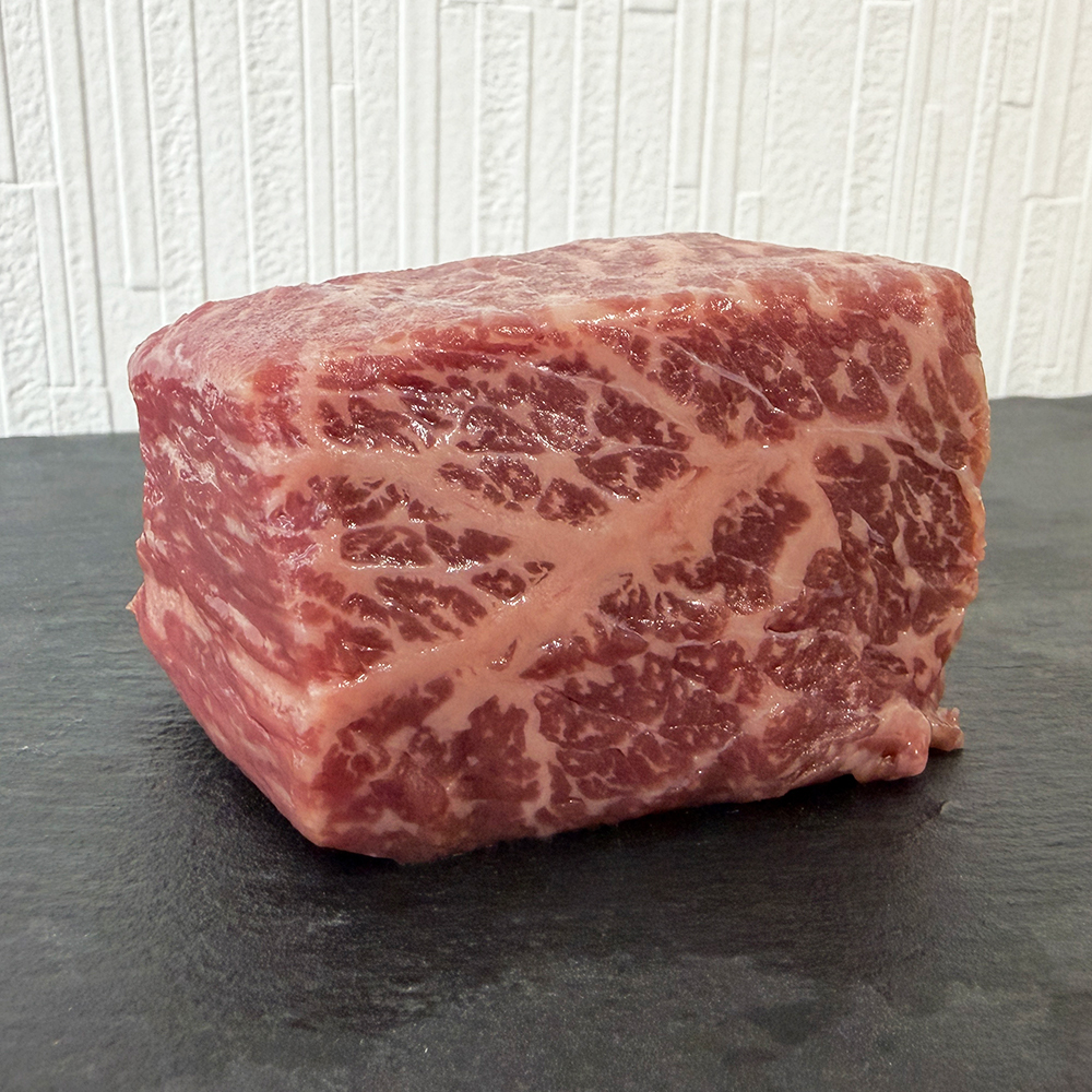 「ザブトン」は、肩ロースの芯にある希少部位です。座布団のような四角い形をしています。芸術的な霜降りが入り、口に入れた瞬間に溶けるような食感と濃厚なコクが広がります。柔らかくなめらかな肉質が特長です。