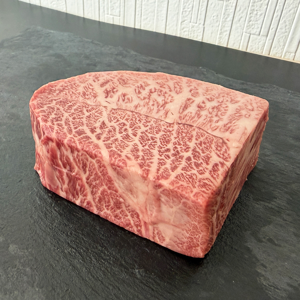 「ミスジ」は、肩甲骨の裏側にある、葉脈のような美しいサシが特徴の希少部位です。あまり動かない部位のため、霜降りも多く、とても柔らかいのが特長。融点が低いためとろけるような食感を味わえます。